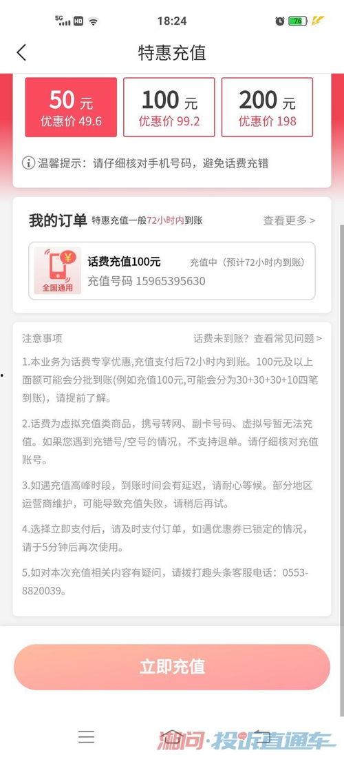3. 延迟到账:有时候,由于网络或其他原因,话费可能会延迟到账,一般会在1小时内到账。